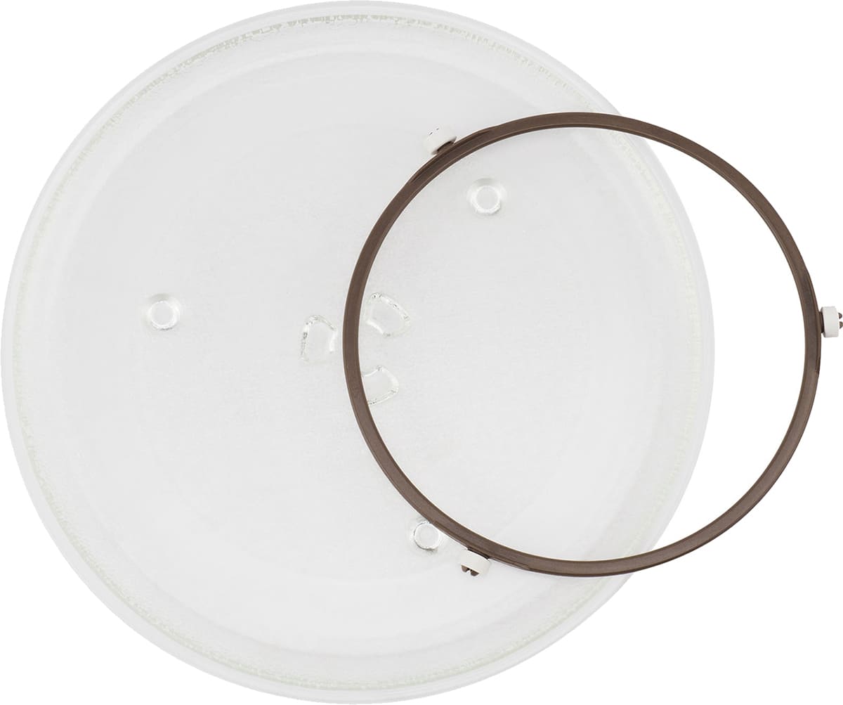 Вращающееся стеклянное блюдо в микроволновой печи позволяет микроволнам равномерно прогревать все блюдо. В большинстве печей магнетрон — источник электромагнитного излучения, — находится в нижней части корпуса или реже сбоку. Микроволны могут проникать в продукты как напрямую, так и отразившись от стенок и потолка камеры. Стеклянное блюдо, иногда называемое также поворотным столом или поддоном, устанавливается на вращающийся механизм с колесиками. Диаметр его зависит от объема камеры и может составить от 20 до 35 см. Размещать на нем можно как одну, так и несколько форм с готовящейся пищей.