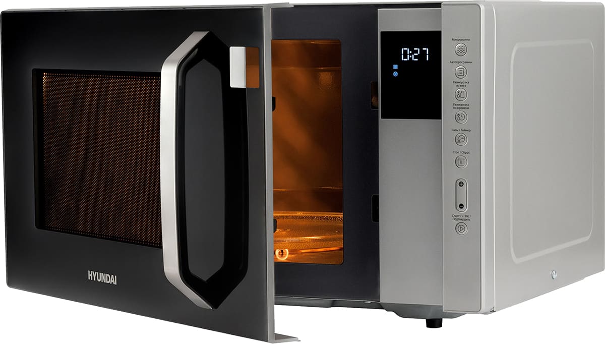 Количество режимов в данной модели Хендай: 5 шт. Для обработки продуктов и готовых блюд используются следующие виды нагрева: Микроволны, Автоматический режим разморозки. Отдельная опция для размораживания продуктов и полуфабрикатов облегчает жизнь — не нужно самостоятельно настраивать параметры. Автоматические программы для приготовления добавлены производителем также для упрощения работы.