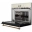 Более интересны цветовые решения для многофункциональных встраиваемых микроволновых печей. Эти приборы отличаются не только большей вместимостью, достаточно высокой ценой и широким набором возможностей, но и обширным выбором дизайнерских решений, а значит — и разнообразной по цвету фурнитурой. К ней можно отнести рукоятки поворотных переключателей, ручки-рейлинги у откидных дверей, элементы отделки. Кроме уже перечисленных оттенков, встроенные микроволновки могут оснащаться фурнитурой красного, золотого, серого цветов, а также оттенков меди и состаренного серебра.
