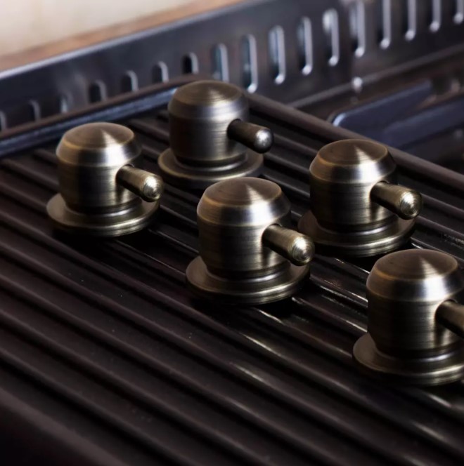 Более интересны цветовые решения для многофункциональных встраиваемых микроволновых печей. Эти приборы отличаются не только большей вместимостью, достаточно высокой ценой и широким набором возможностей, но и обширным выбором дизайнерских решений, а значит — и разнообразной по цвету фурнитурой. К ней можно отнести рукоятки поворотных переключателей, ручки-рейлинги у откидных дверей, элементы отделки. Кроме уже перечисленных оттенков, встроенные микроволновки могут оснащаться фурнитурой красного, золотого, серого цветов, а также оттенков меди и состаренного серебра.