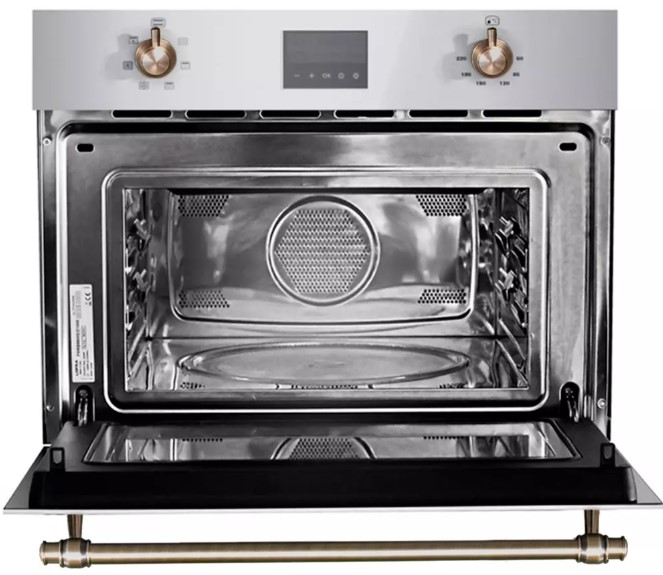 Нержавеющая сталь — быстро нагревается и хорошо переносит высокие температуры, поэтому ее используют в микроволновках с конвекцией.