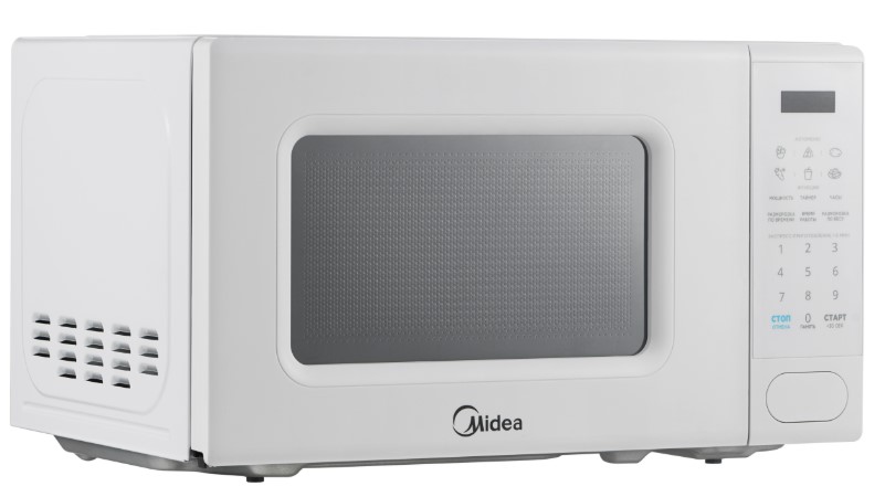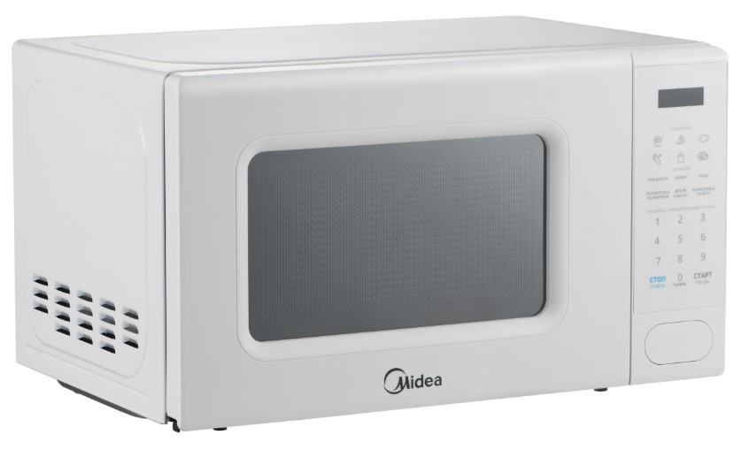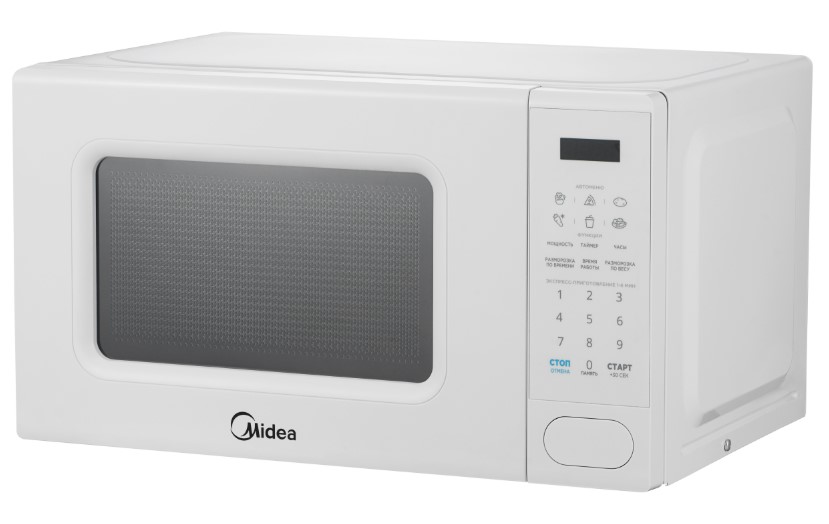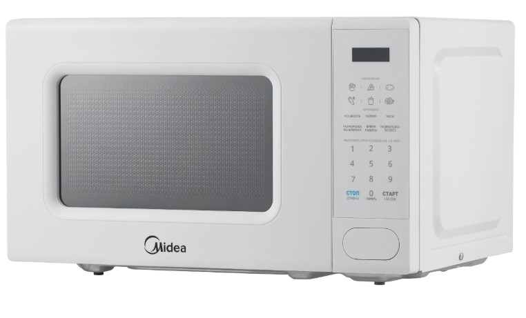 Отдельностоящая микроволновая печь Midea EM720C2PR-W — компактное и полезное дополнение к уже имеющейся кухонной технике. Ее можно установить на шкаф, на свободную столешницу, но не рекомендуется ставить на другие приборы, например, холодильник. Цвет этой модели: белый.