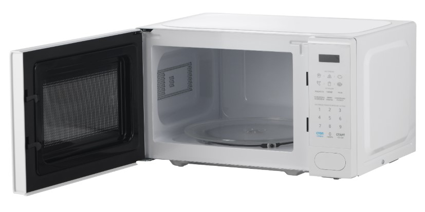 Материал внутренней поверхности — эмаль. Это самое распространенное покрытие, так как оно зарекомендовало себя высоким качеством, устойчивостью к механическим воздействиям и простотой ухода. Полезный объем для готовки — 20 л. Для установки и прогрева посуды используется классическое вращающееся блюдо. Понятное электронное управление не вызовет трудностей ни у кого из вашей семьи. Для изменения настроек или выбора программ используются следующие переключатели: сенсорные.