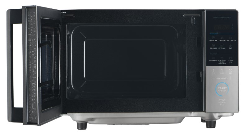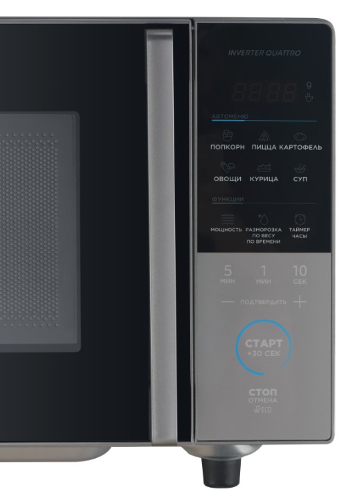Для обработки продуктов и готовых блюд используются следующие виды нагрева: Микроволны. Если вы спешите, а еду нужно разогреть, используйте быстрый старт — благодаря ему 30 секунд прибор работает на полной мощности. Отдельная опция для размораживания продуктов и полуфабрикатов облегчает жизнь — не нужно самостоятельно настраивать параметры. Автоматические программы для приготовления добавлены производителем также для упрощения работы.