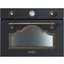 Пять функций приготовления включают готовку при помощи микроволн, откидного гриля, комбинации этих способов нагрева, а также размораживание по весу и по времени. Фасад дополнен латунной фурнитурой в стиле ретро, стильными аналоговыми часами на панели управления, фигурным стеклом в дверце печи. Акустический сигнал оповещает об истечении времени приготовления. Панель управления располагается сверху, для задания режима работы и времени приготовления служат два поворотных переключателя. В комплект входят решетка с ограничителем и специальная тарелка Crisp Plate с бортиками.