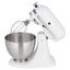 В комплект входят венчик для взбивания, крюки для работы с тестом, насадка-лопатка для качественного перемешивания. Есть возможность приобрести отдельно дополнительные насадки и тем самым существенно расширить функционал. Для удобства использования прибора имеется защитный обод, оснащенный воронкой. Предусмотрено 10 скоростей работы, регулировка осуществляется с помощью специального рычага. 1-я скорость подойдет для смешивания сухих ингредиентов, а 10-я — для взбивания сливок и яичных белков. Для приготовления теста рекомендуется использовать 4-6 скорости. Для лучшего смешивания предусмотрена функция плавного пуска.