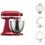Обратите внимание на цвет миксера Китчен Эйд — красный — он может стать как гармоничным дополнением кухонной обстановки, так и ярким акцентом. В комплекте с самим прибором идут дополнительные элементы: венчик для взбивания, крюки для теста, насадка-лопатка для перемешивания.