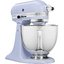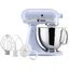 Обратите внимание на цвет миксера Китчен Эйд — фиолетовый — он может стать как гармоничным дополнением кухонной обстановки, так и ярким акцентом. В комплекте с самим прибором идут дополнительные элементы: венчик для взбивания, крюки для теста, лопатка с гибким ребром.
