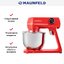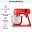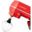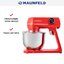 Обратите внимание на цвет миксера Маунфилд — красный — он может стать как гармоничным дополнением кухонной обстановки, так и ярким акцентом. В комплекте с самим прибором идут дополнительные элементы: венчик для взбивания, защитный обод с воронкой для засыпания продуктов, крюки для теста, насадка-лопатка для перемешивания.