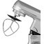 В комплект входят три насадки — венчик, крюки для теста и лопатка для перемешивания, а также защитный обод с воронкой для удобной дозагрузки продуктов во время работы. Чаша объёмом 5 литров изготовлена из нержавеющей стали, она прочна и устойчива к коррозии, не впитывает запахи и легко моется. Воронка облегчает добавление муки, масла или жидкостей без остановки процесса.