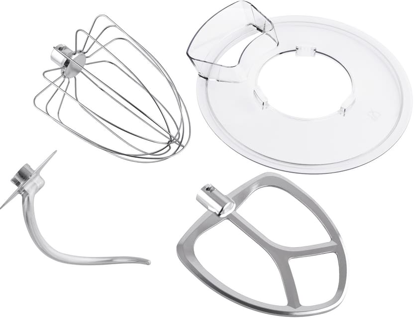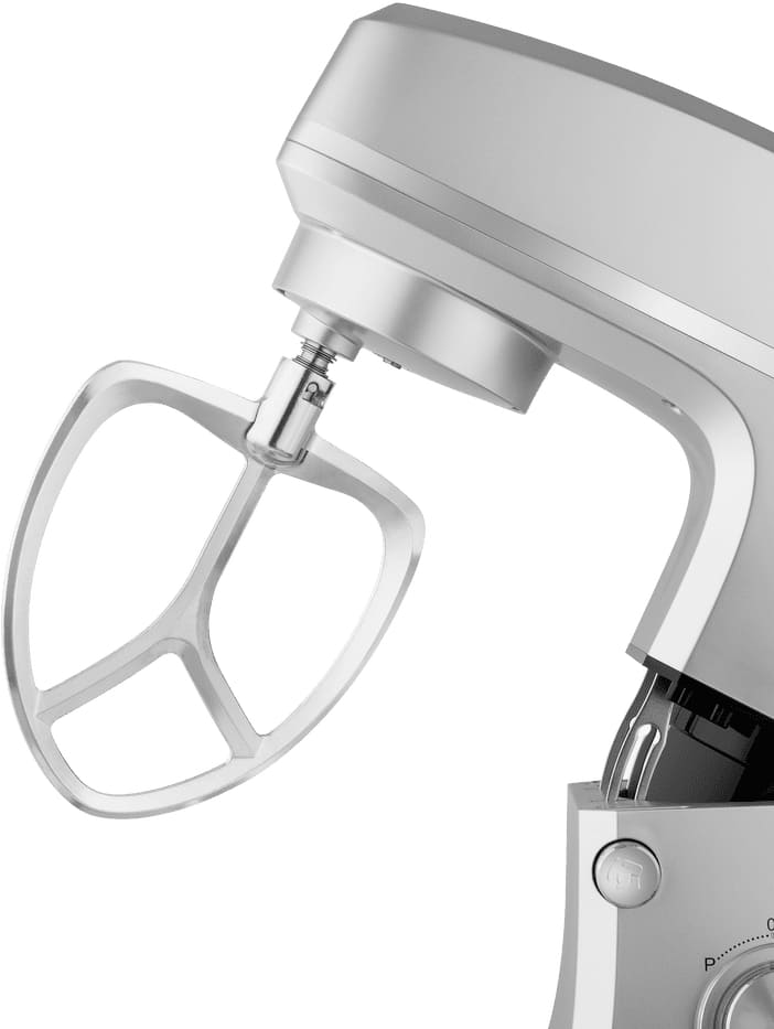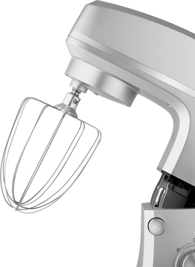Обратите внимание на цвет миксера Маунфилд — нержавеющая сталь — он может стать как гармоничным дополнением кухонной обстановки, так и ярким акцентом. В комплекте с самим прибором идут дополнительные элементы: венчик для взбивания, защитный обод с воронкой для засыпания продуктов, крюки для теста, насадка-лопатка для перемешивания.