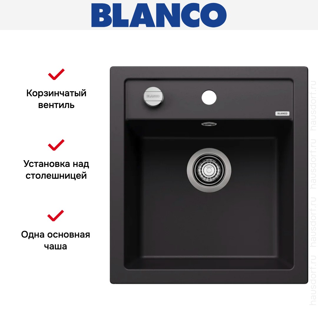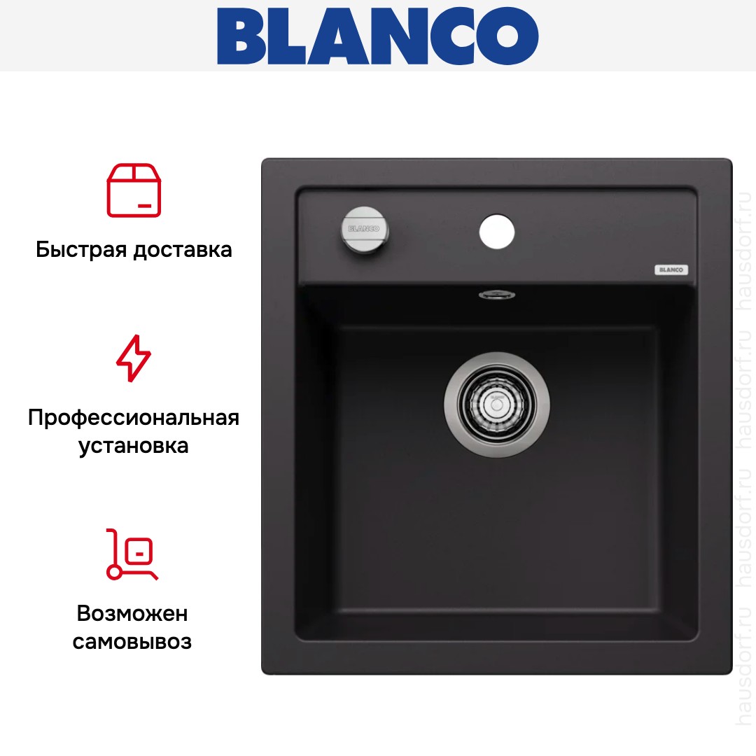 Мойка BLANCO DALAGO 45 Silgranit черный, клапан-автомат в Казани и Татарстане