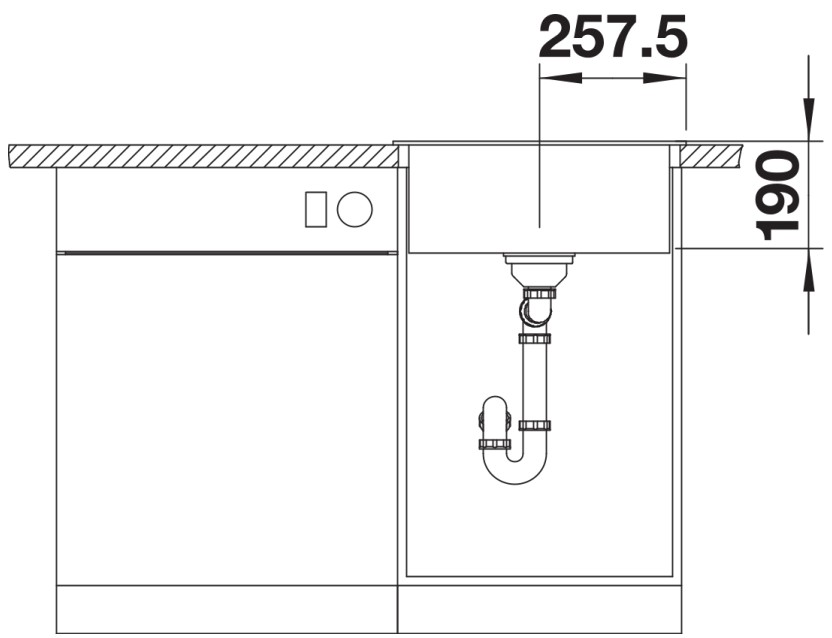 Эту модель можно установить только в одном положении — подходит для гарнитура с фиксированным местом смесителя. Для корректного размещения вам понадобится база шириной 50 см.