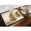 Врезная мойка выглядит аккуратно и стильно. Имеется возможность установки под столешницу, что сделает конструкцию еще более гигиеничной и эффектной. Оборачиваемая конструкция позволяет подстроить расположение чаш под индивидуальные особенности помещения и владельцев. Материал изготовления — искусственный камень Silgranit puradur II, на 80% состоящий из натурального гранита, идеально гладкий, прочный, не изменяющий цвет под действием пищевых красителей. Глубина основной чаши 19 см позволяет мыть посуду большого размера, не опасаясь, что брызги попадут на мебель. Клапан-автомат обеспечивает автоматический отвод воды, что повышает комфорт использования.