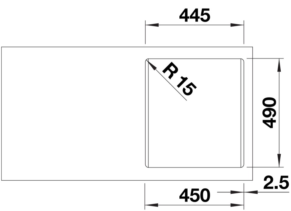 Эту модель можно установить только в одном положении — подходит для гарнитура с фиксированным местом смесителя. Конструкция предусматривает небольшой бортик по краю. Для корректного размещения вам понадобится база шириной 45 см.
