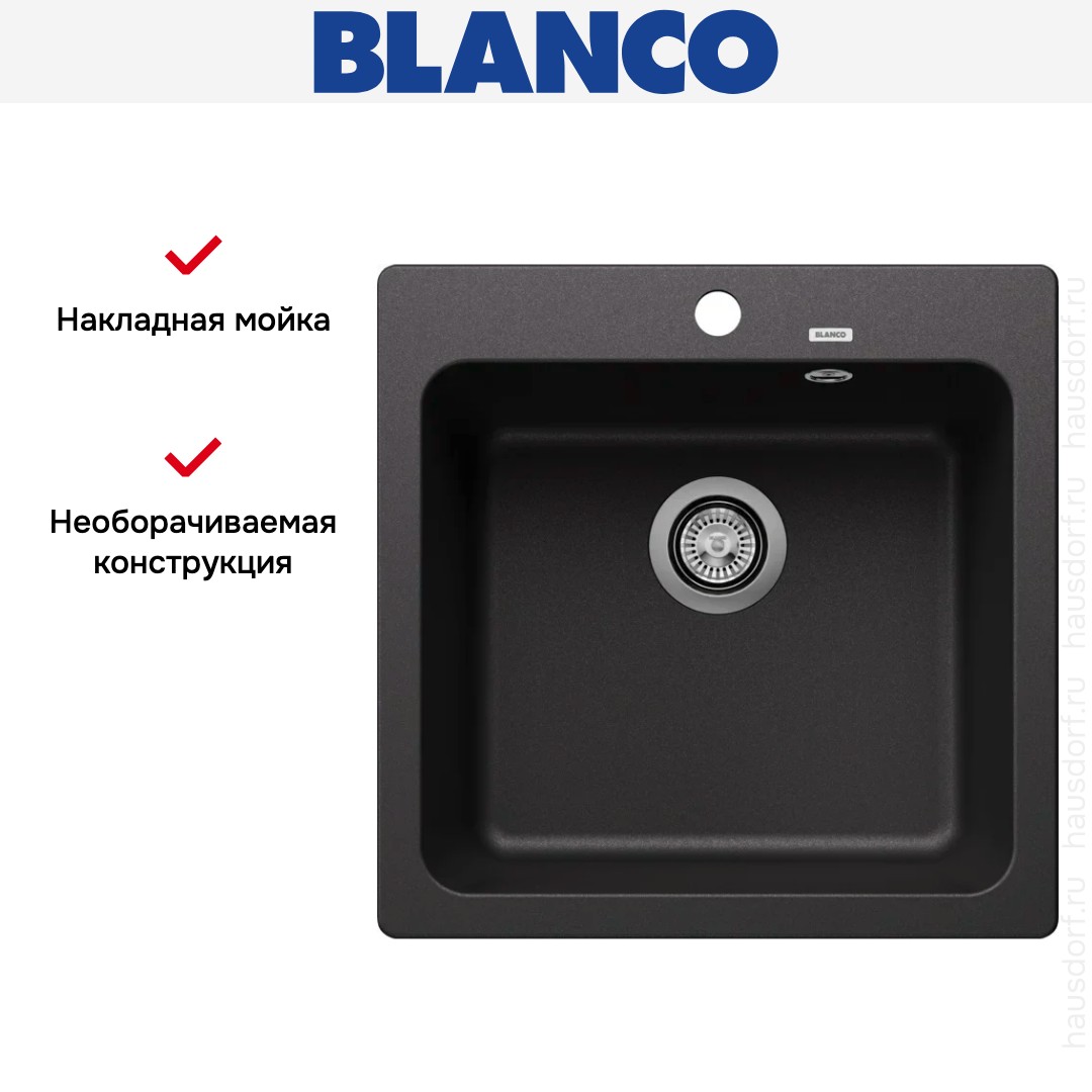 Накладная мойка Blanco — отличный выбор для тех, кто хочет создать гармоничное пространство с удобной сантехникой. простой в установке. Преимущество такой конструкции: легко подобрать практически к любой кухне и не придется демонтировать вместе с тумбой при ремонте или перестановке остальной мебели. Данная модель имеет стандартную форму, поэтому подходит большинству пользователей. Устанавливается над столешницей: это самый простой способ монтажа, зачастую с ним можно справиться даже без специалистов, главное — правильно рассчитать размеры ниши.