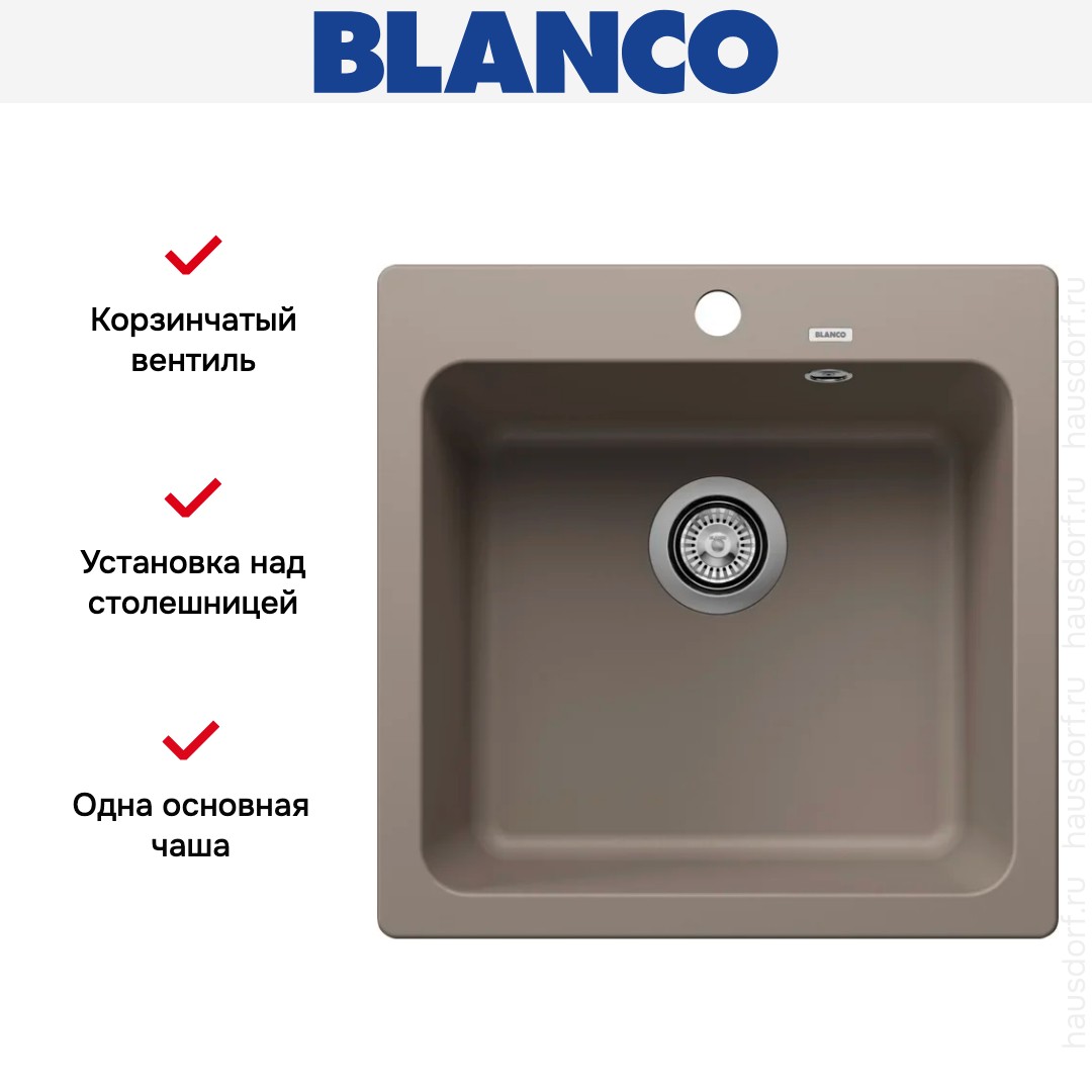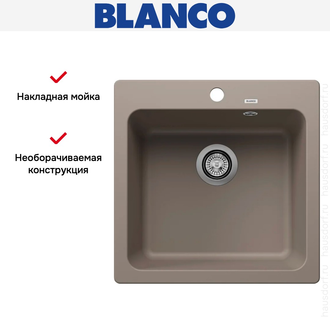 Накладная мойка Blanco — отличный выбор для тех, кто хочет создать гармоничное пространство с удобной сантехникой. простой в установке. Преимущество такой конструкции: легко подобрать практически к любой кухне и не придется демонтировать вместе с тумбой при ремонте или перестановке остальной мебели. Данная модель имеет стандартную форму, поэтому подходит большинству пользователей. Устанавливается над столешницей: это самый простой способ монтажа, зачастую с ним можно справиться даже без специалистов, главное — правильно рассчитать размеры ниши.