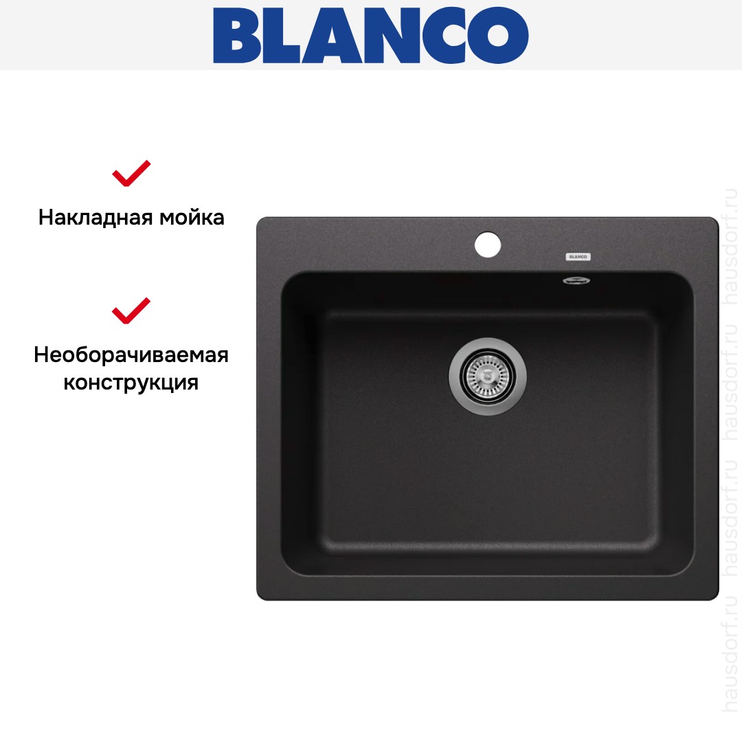 Накладная мойка Blanco — отличный выбор для тех, кто хочет создать гармоничное пространство с удобной сантехникой. простой в установке. Преимущество такой конструкции: легко подобрать практически к любой кухне и не придется демонтировать вместе с тумбой при ремонте или перестановке остальной мебели. Данная модель имеет стандартную форму, поэтому подходит большинству пользователей. Устанавливается над столешницей: это самый простой способ монтажа, зачастую с ним можно справиться даже без специалистов, главное — правильно рассчитать размеры ниши.