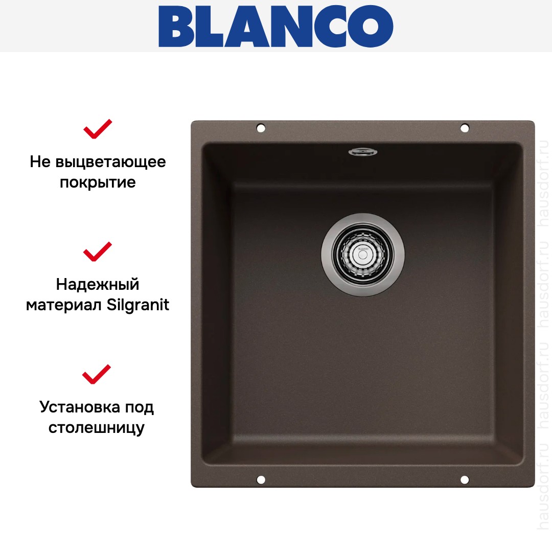 Обратите внимание на дизайнерские отличия мойки Бланко, которые помогут в создании идеальной кухни в вашем доме. Она выполнена в цвете кофе. Основной материал — Silgranit, он гарантирует надежность и долгие годы службы без повреждений.