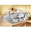 Мойка TIPO 9 E — это индивидуальность и стиль. Поверхность выполнена в двух вариантах — матовая нержавеющая сталь и декор. Материал отличает прочность, надежность, устойчивость к физическим воздействиям и коррозии. Мойку можно установить как в угловой шкаф, так и стандартную столешницу. Дополнительное крыло оборудовано сливом, что позволяет сушить и размораживать продукты. На большой площадке, где расположен смеситель, можно разместить кухонные принадлежности и аксессуары.