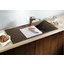 над столешницей — край модели выступает на несколько миллиметров, это удобно, так как подходит для любых поверхностей.
