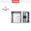 Особенностью модели являются минимальные радиусы скруглений: внутренняя чаша имеет закругление всего 1,2 см, а внешние кромки — 1 см. Такой подход придаёт изделию чёткие геометрические формы, подчёркивая современный характер дизайна, и в то же время упрощает очистку за счёт почти прямых углов. Мойка изготовлена из высококачественной нержавеющей стали и отличается исключительной устойчивостью к коррозии, механическим повреждениям и перепадам температур. Матовая поверхность сохраняет презентабельный вид даже при ежедневном использовании, эффективно маскируя мелкие царапины и отпечатки.