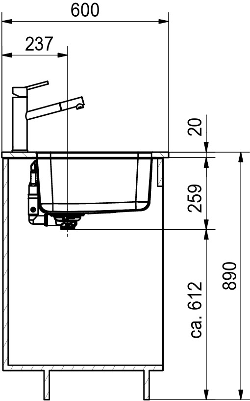 База — это шкаф, в который вы планируете устанавливать мойку. Данный параметр обозначает минимальную ширину между боковые стенками. Именно столько нужно, чтобы правильно разместить всю сантехнику.