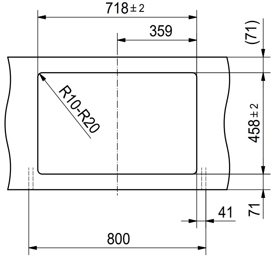 Изделие предназначено для установки над столешницей, что упрощает монтаж и не требует сложной модификации мебели. Такой способ крепления особенно востребован в модульных гарнитурах, на дачах или в интерьерах, где важна возможность быстрой замены или временное решение. Для правильной установки требуется тумба шириной 80 см, а вырез в столешнице должен составлять 71,8×25,5 см с радиусом закругления 2 см, что гарантирует устойчивое и герметичное размещение.