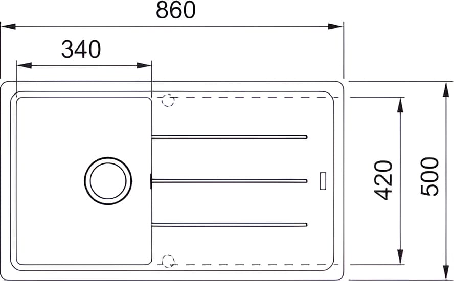Дополнительная поверхность из того же материала, что и мойка. Может использоваться для хранения бытовой химии, повышает комфорт при мытье продуктов — их можно держать под рукой, не замочив столешницу.