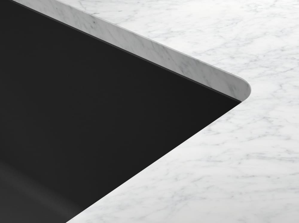 Установка под столешницу заключается в том, что мойку устанавливают таким образом, чтобы бортики не были видны на поверхности, а уровень бортиков находился ниже уровня столешницы.
