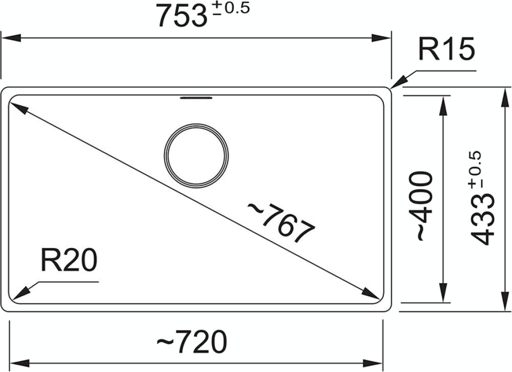 - Габариты мойки, ШxГ (см): 44.5 x 44.5