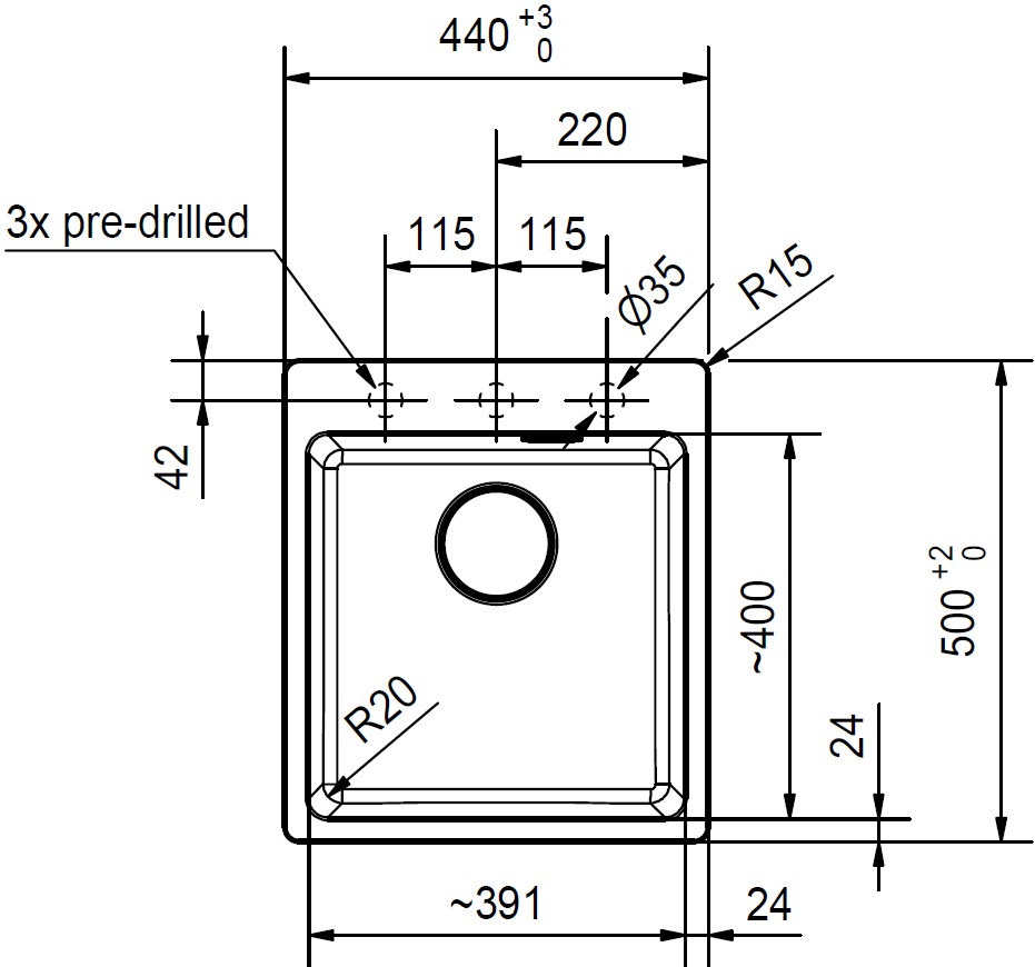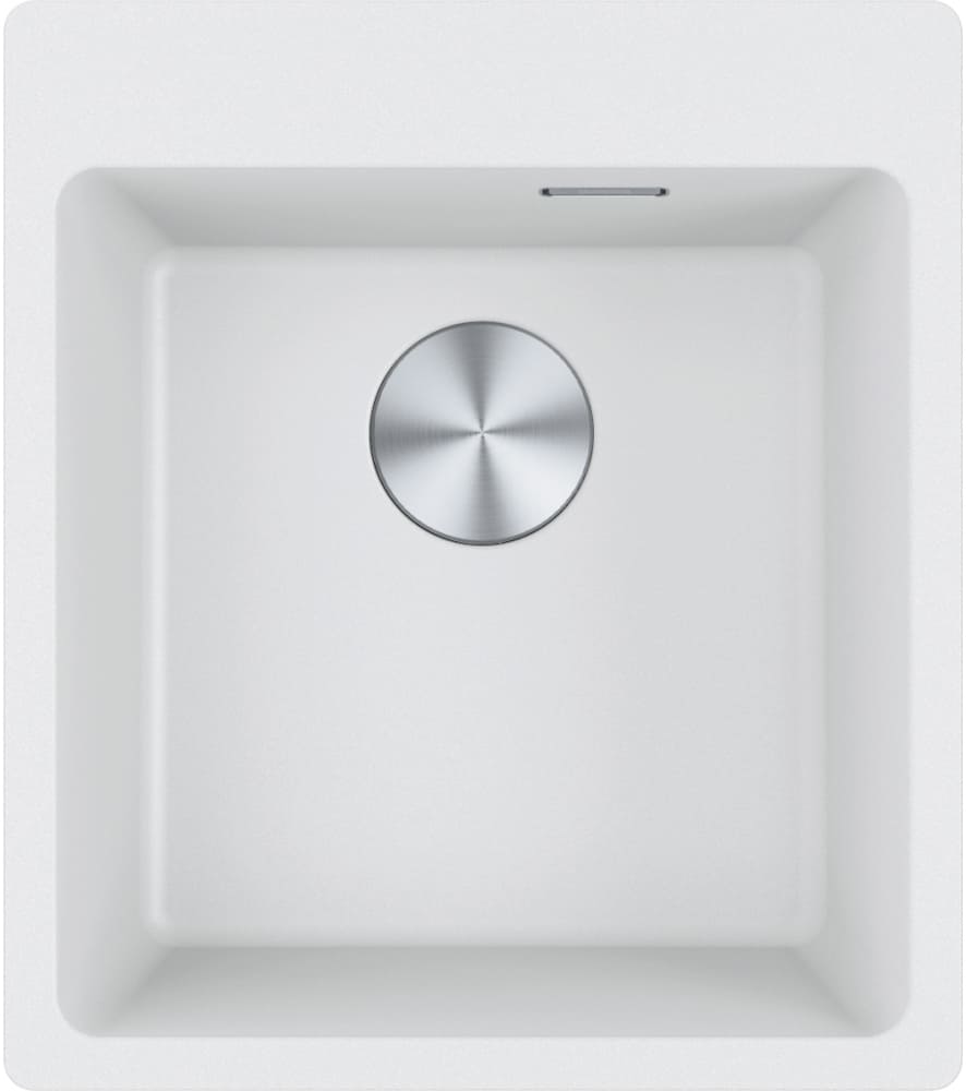 Особое внимание привлекает белоснежный оттенок поверхности — редкое и стильное решение, которое придаёт кухне свежесть, чистоту и визуальную лёгкость. Материал обладает высокой устойчивостью к царапинам, перепадам температур и бытовым моющим средствам, сохраняя яркость цвета на долгие годы. Радиус скругления внутренней чаши — 2 см, а внешних кромок — 1,5 см, что придаёт изделию мягкость линий и упрощает уход за поверхностью, исключая скопление загрязнений в углах.