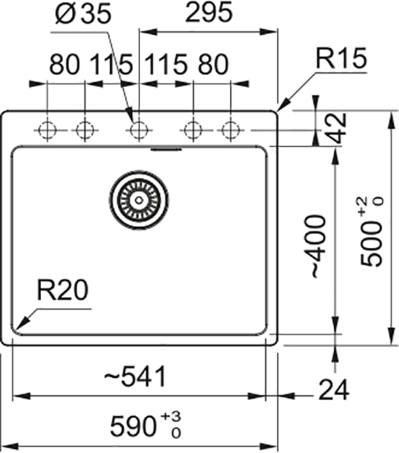Глубина чаши тщательно продумана: она обеспечивает удобство при выполнении повседневных задач — от мытья посуды до подготовки продуктов — и одновременно снижает риск разбрызгивания жидкости. Все контуры изделия смягчены: внутренние углы имеют радиус скругления 2 см, наружные — 1,5 см, как и у шаблона для выреза, что придаёт конструкции плавность линий и облегчает очистку.