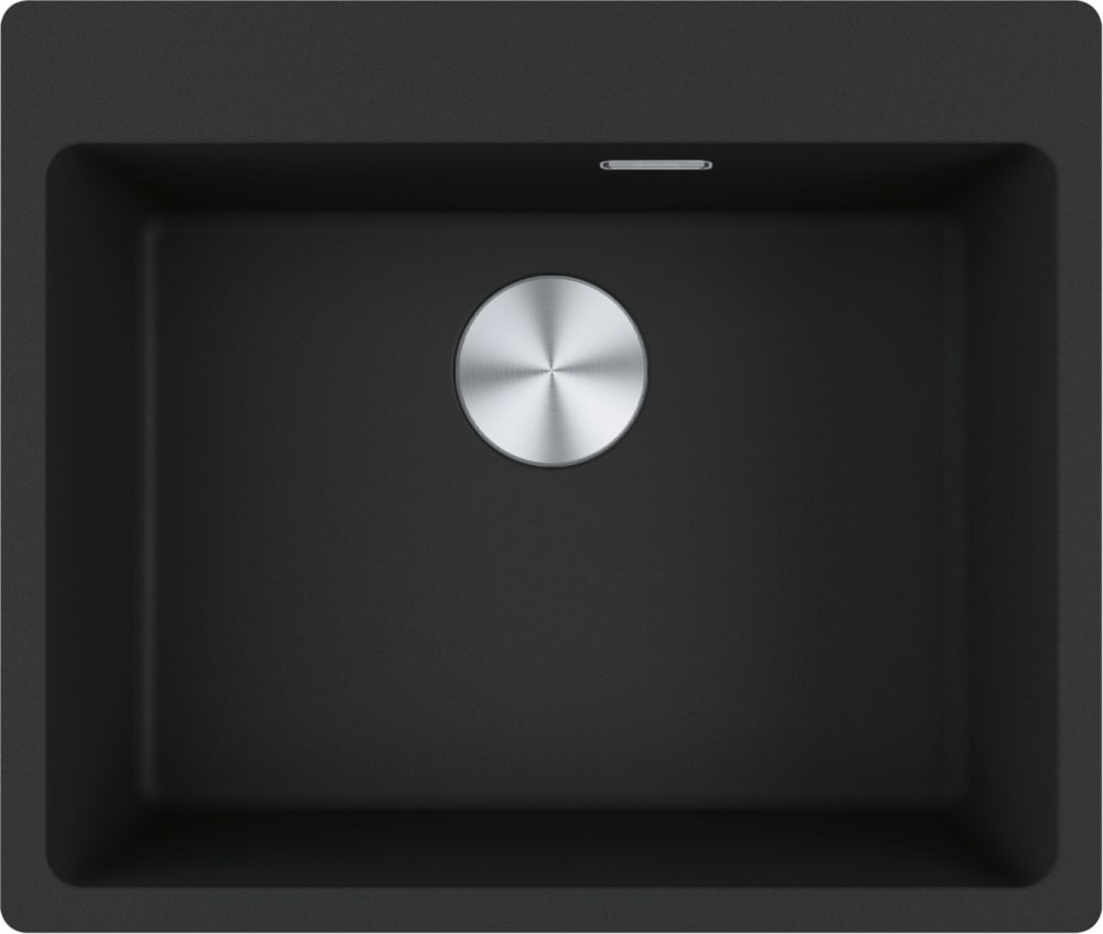 Мойка Franke MRG 610-54 FTL черного матового цвета — смелый и современный выбор для кухни, где ценятся лаконичность, функциональность и эстетика. Эта прямоугольная врезная модель устанавливается над столешницей, обеспечивая четкие линии и безупречный внешний вид фасада. Ее внешние габариты — 59×50 см — идеально соответствуют стандартному нижнему модулю шириной 60 см, а для установки требуется подготовить проем размером 57×48 см.