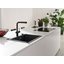 Матовое чёрное покрытие выглядит стильно и современно, подчёркивая индивидуальность интерьера. Оно гармонично сочетается с различными материалами — деревом, бетоном, металлом — и органично вписывается в такие стили, как лофт, минимализм или хай-тек. Поверхность устойчива к царапинам, перепадам температур и воздействию агрессивных моющих средств, сохраняя глубину цвета и текстуру даже при интенсивной эксплуатации. Благодаря продуманной конструкции, высокому качеству исполнения и выразительному дизайну эта мойка станет не только практичным, но и декоративным элементом кухонного пространства.