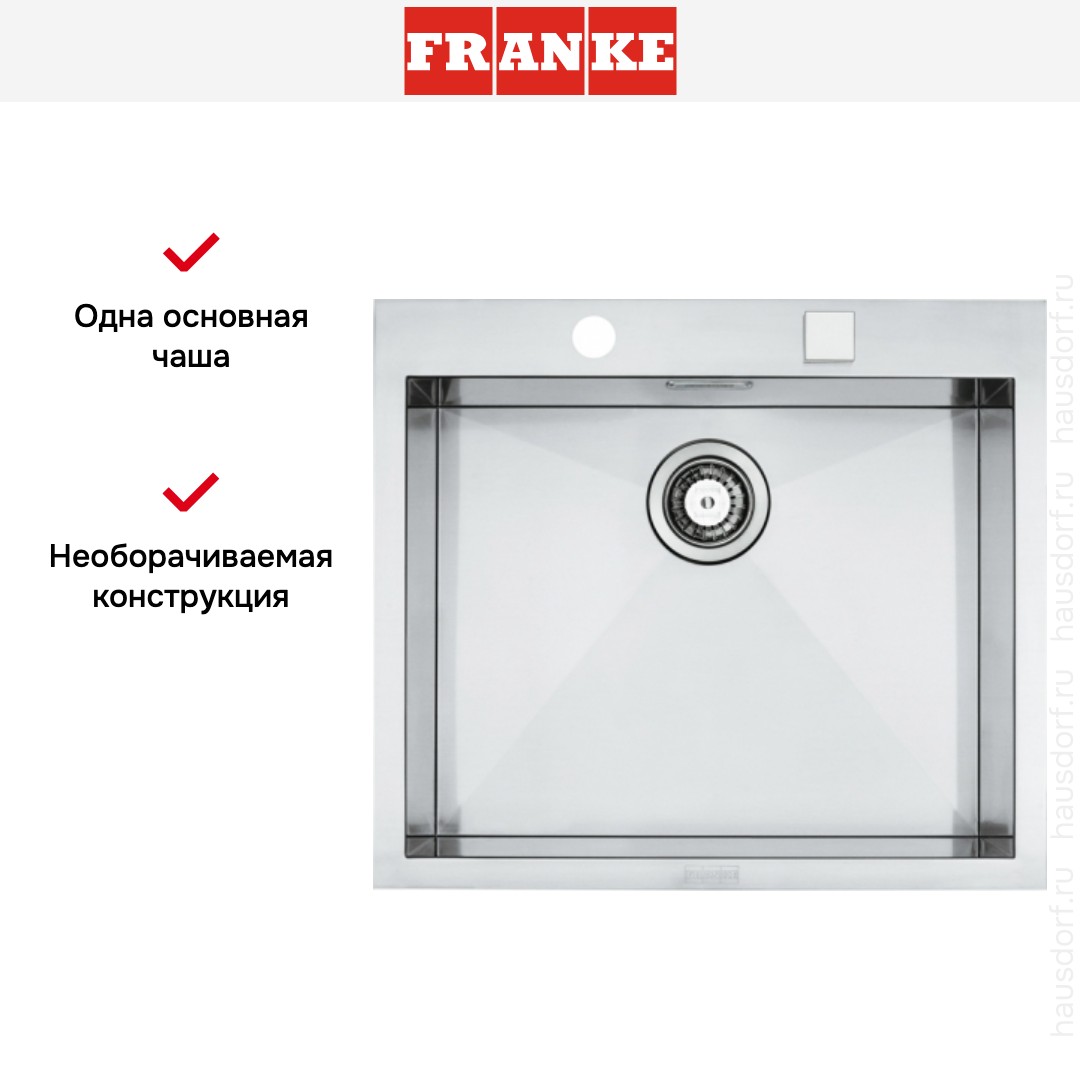 Врезная мойка Franke — отличный выбор для тех, кто хочет создать гармоничное кухонное пространство с полностью вписывающейся в него сантехникой. Преимущество такой конструкции — плотное прилегание к столешнице, так как вырез подбирается индивидуально под габариты модели. Под стыки не попадает вода, поэтому срок службы значительно увеличивается, пользоваться ей удобно и приятно. Данная модель имеет стандартную форму, поэтому подходит большинству пользователей. Устанавливается вровень со столешницей, благодаря чему не остается стыков, в которых копились бы загрязнения.