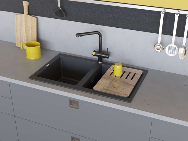 Две равноценные по размеру чаши позволяют разделить мытье посуды и продуктов. В одной вы можете оставить тарелки до вечера или сложить кастрюли в процессе приготовления, чтобы не тратить на них время. В другой — чистой — можно оставить овощи, фрукты, зелень, ожидающие промывки.