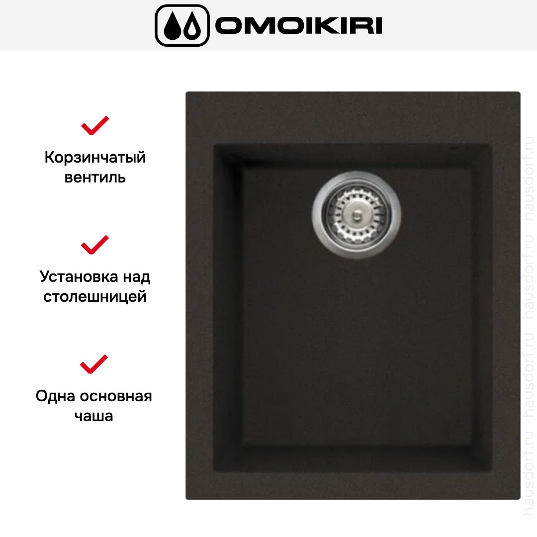 Накладная мойка Omoikiri — отличный выбор для тех, кто хочет создать гармоничное пространство с удобной сантехникой. простой в установке. Преимущество такой конструкции: легко подобрать практически к любой кухне и не придется демонтировать вместе с тумбой при ремонте или перестановке остальной мебели. Данная модель имеет стандартную форму, поэтому подходит большинству пользователей. Устанавливается над столешницей: это самый простой способ монтажа, зачастую с ним можно справиться даже без специалистов, главное — правильно рассчитать размеры ниши.