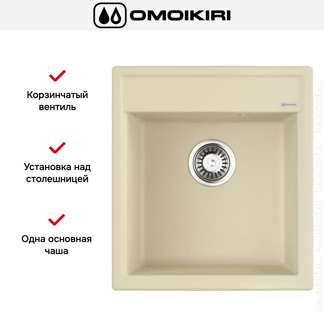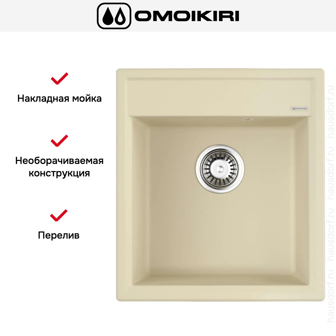 Мойка Omoikiri Daisen 46 BE представлена в лаконичном и современном исполнении, выполнена в мягком ванильном тоне и идеально подходит для тех, кто ценит стиль и практичность. Накладной квадратный дизайн с габаритами 46×51 см экономит место и в то же время визуально расширяет рабочую зону. Плоские края создают аккуратный переход к столешнице, а ровная цветовая гамма легко сочетается с разными материалами отделки.