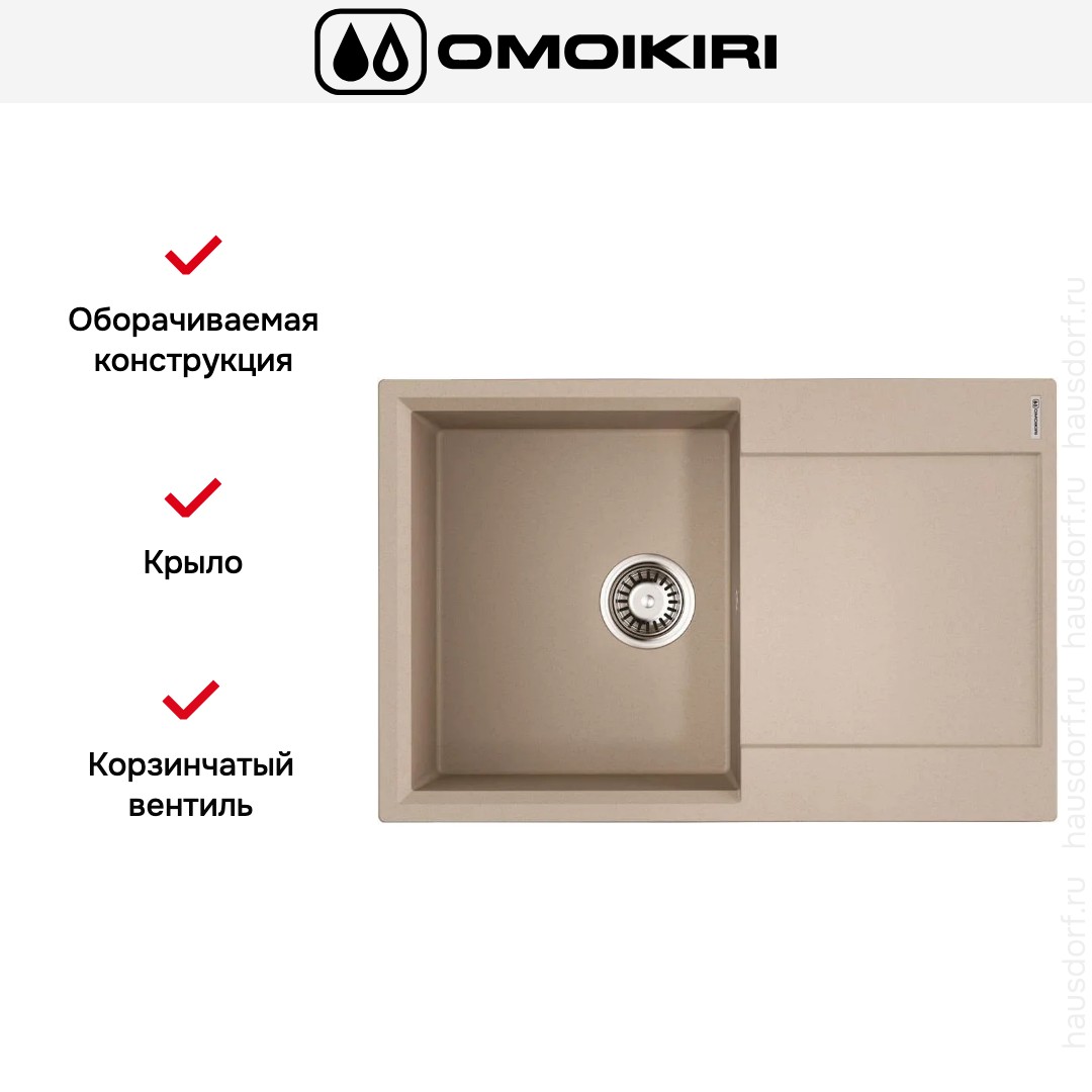 Обратите внимание на дизайнерские отличия мойки Омойкири, которые помогут в создании идеальной кухни в вашем доме. Она выполнена в цвете бежевый. Крыло, расположенное слева или справа, является дополнительным рабочим пространством, на котором можно сушить посуду, разделывать мясо и нарезать овощи.