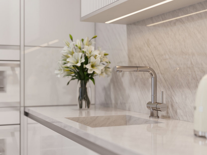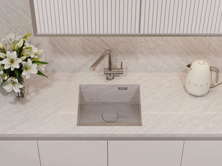 Для создания бесшовного дизайна кухни или ванной можно интегрировать мойку в столешницу так, чтобы создавалось ощущение единого пространства. Такие модели устанавливаются под столешницу и сделаны из такого же материала. Встроить подобную мойку в уже готовую кухню сложно, обычно их выбирают на этапе продумывания интерьера.
