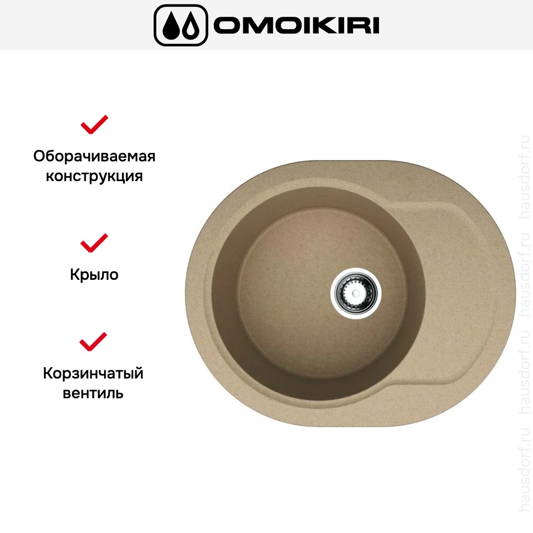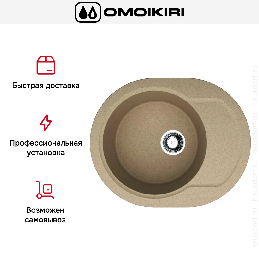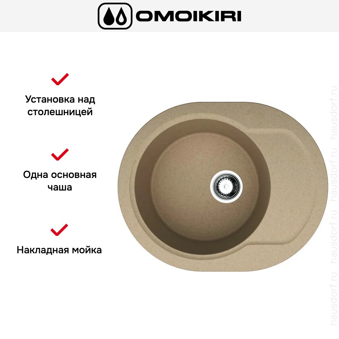Мойка Omoikiri Manmaru 62-CA — компактная накладная модель, имеющая красивую овальную форму. Габариты 6250 см делают её удобной для небольших столешниц, а карамельный оттенок добавляет тепла рабочей зоне. Поверхность выглядит монолитно и при этом не перегружает пространство, что важно для современных открытых планировок.