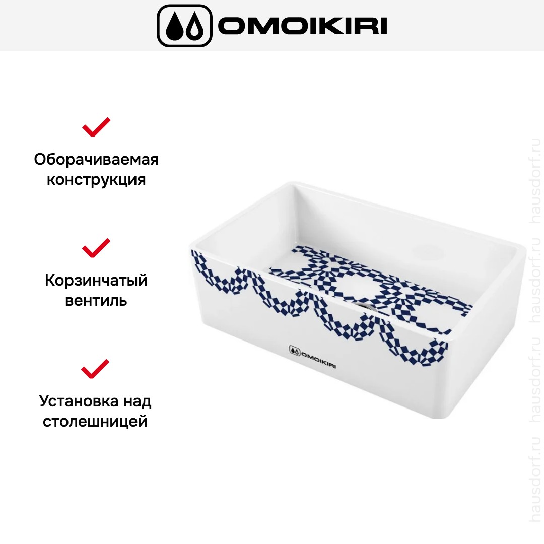 Мойка Omoikiri Mikura 76 Tokyo-2 представляет собой модульную прямоугольную модель с размерами 76×46 см и предназначена для установки над столешницей. Она разработана для базы шириной 80 см и требует монтажного отверстия 69×39 см, что облегчает планирование кухни. Оборачиваемая конструкция дает свободу выбора направления установки, подстраиваясь под планировку и расположение смесителя.