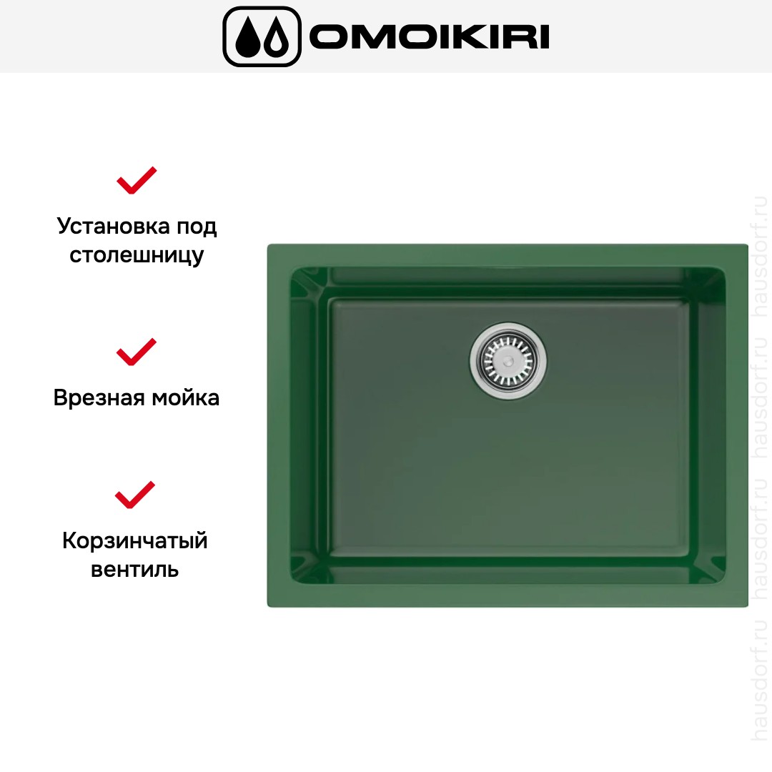 Мойка Omoikiri Okinoshima 61-U-I-RG Glossy — врезная прямоугольная модель, которая сочетает элегантность и практичность для современной кухни. Ее глянцевая поверхность королевского зеленого оттенка служит акцентом в интерьере и добавляет глубины пространству. Цвет устойчив к выцветанию и визуально подчёркивает чистоту линий.