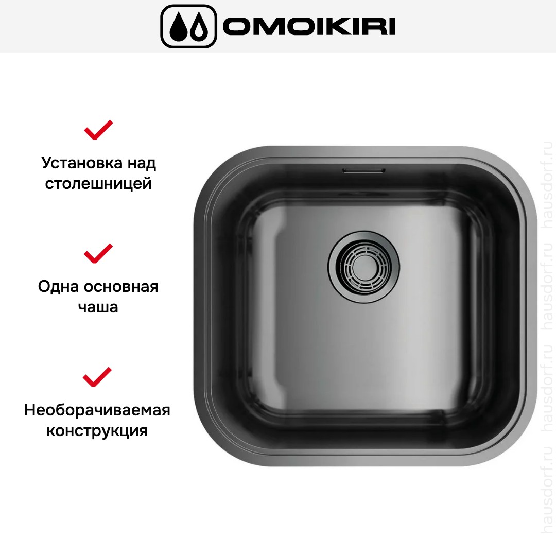 Обратите внимание на дизайнерские отличия мойки Омойкири, которые помогут в создании идеальной кухни в вашем доме. Она выполнена в цвете вороненая сталь. Основной материал — нержавеющая сталь, он гарантирует надежность и долгие годы службы без повреждений.