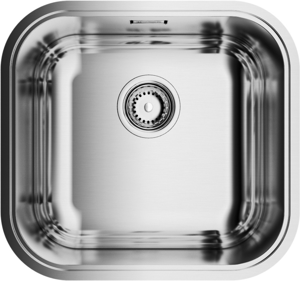Выглядит как компактная врезная мойка квадратной формы, выполненная в оттенке нержавеющей стали. Плавные скругления радиусом 8 см смягчают строгие линии, а размеры 44.5×41.5 см делают агрегат заметно практичным для небольших столешниц. Необорачиваемая конструкция сохраняет заданную ориентацию, при этом профиль корпуса аккуратно сочетается с современными поверхностями благодаря сниженному визуальному объему и ровной лицевой кромке.