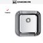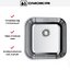 выглядит как компактная квадратная мойка из нержавеющей стали с габаритами 44,5×44,5 см — строгая геометрия и мягкие радиусы скругления 6,5 см создают сдержанный, практичный образ. Мойка имеет одну основную чашу размером 40×40 см и глубиной 18 см, что придаёт ей сбалансированный силуэт и удобные пропорции для повседневных задач. Поверхность сохранена в естественном металловом тоне нержавеющей стали, а цельнотянутая конструкция подчёркивает монолитность корпуса.