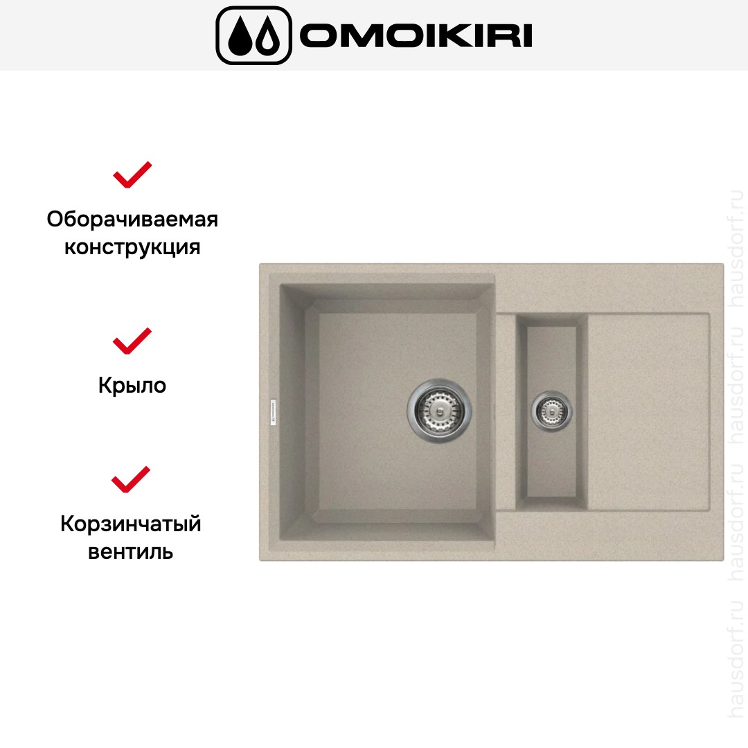 Обратите внимание на дизайнерские отличия мойки Омойкири, которые помогут в создании идеальной кухни в вашем доме. Она выполнена в цвете бежевый. Крыло, расположенное слева или справа, является дополнительным рабочим пространством, на котором можно сушить посуду, разделывать мясо и нарезать овощи.