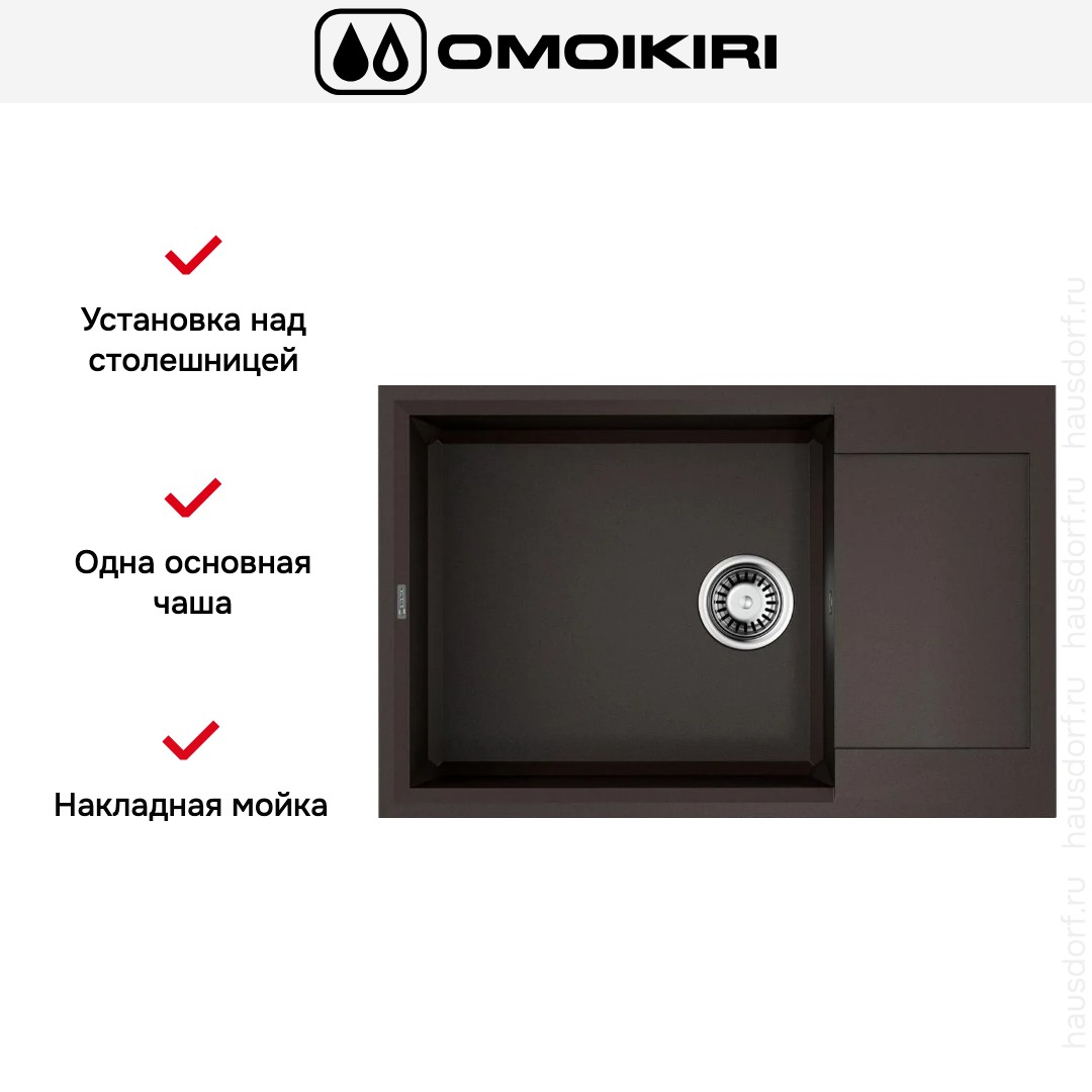 Обратите внимание на дизайнерские отличия мойки Омойкири, которые помогут в создании идеальной кухни в вашем доме. Она выполнена в цвете эспрессо. Крыло, расположенное является дополнительным рабочим пространством, на котором можно сушить посуду, разделывать мясо и нарезать овощи.