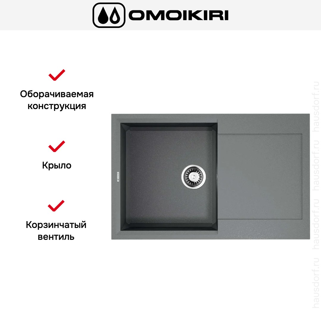 Обратите внимание на дизайнерские отличия мойки Омойкири, которые помогут в создании идеальной кухни в вашем доме. Она выполнена в цвете Серый Ленинград. Крыло, расположенное слева или справа, является дополнительным рабочим пространством, на котором можно сушить посуду, разделывать мясо и нарезать овощи.